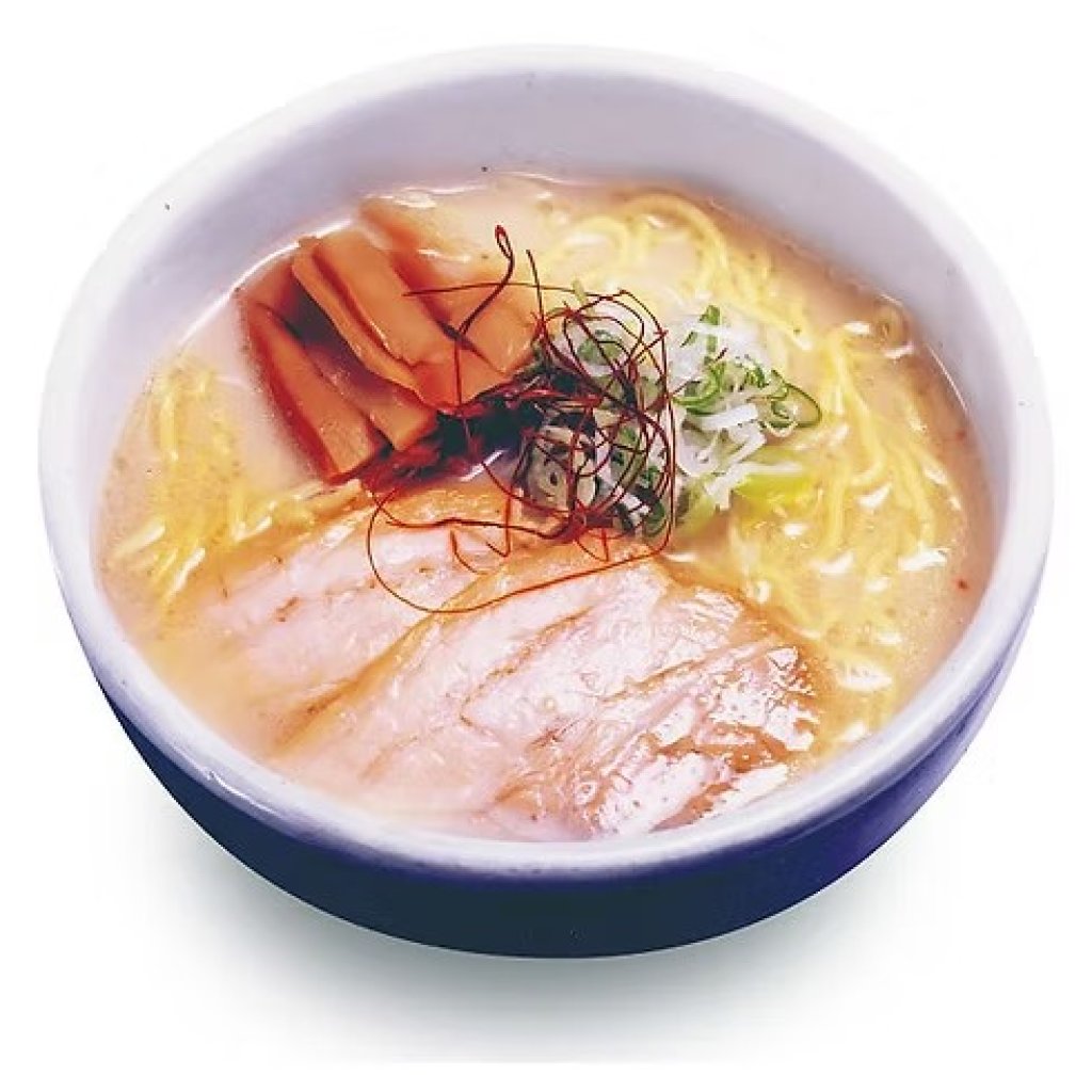 這款麵條是使用新鮮麵粉經過兩天的慢慢乾燥而成,味道就像是生麵一般。濃郁的豬骨湯中帶有豬肉的美味和海鮮的風味,並融合了醬油、味噌和鹽的"混合風味"。