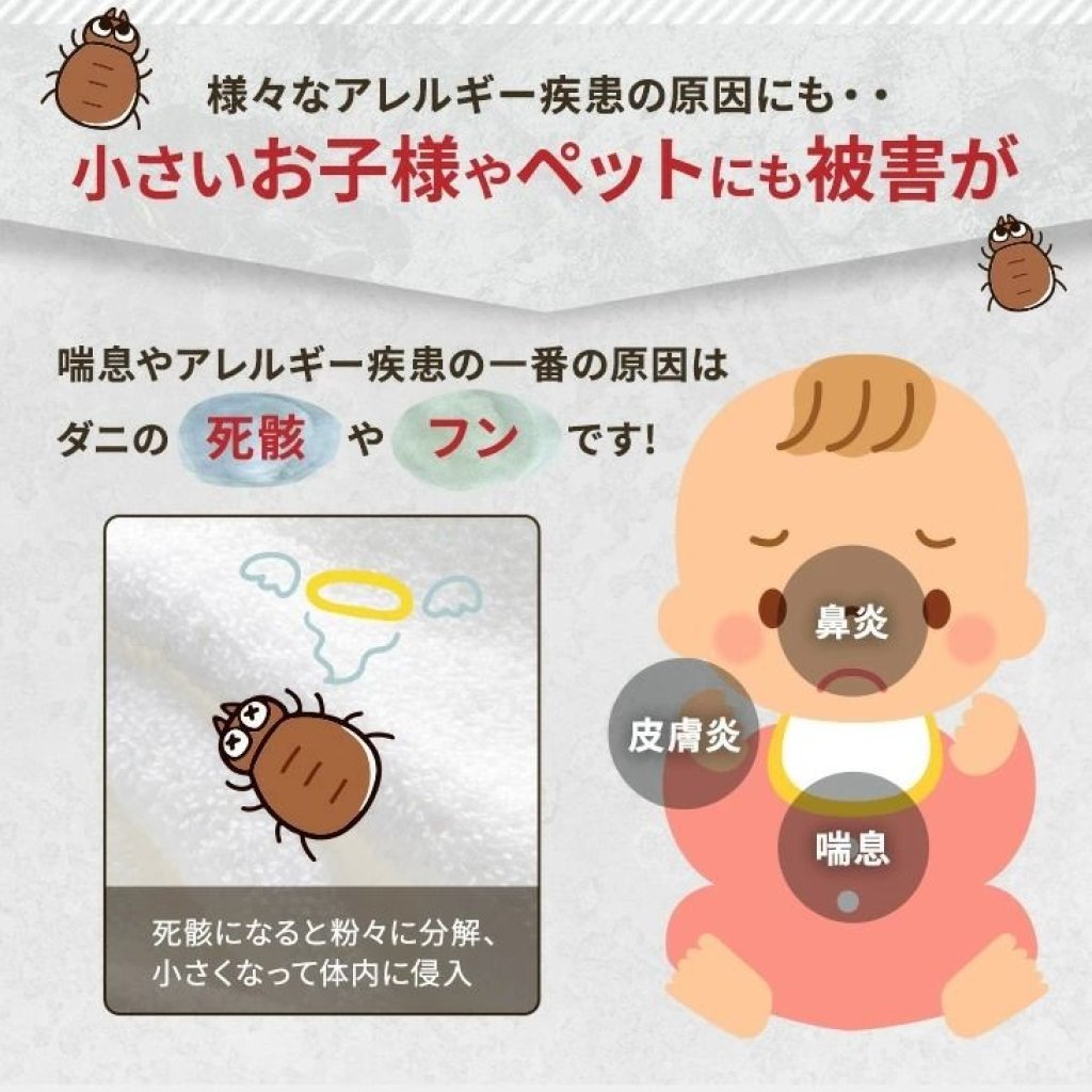 * 抑制繁殖與封鎖過敏原:內部採用特殊的 Bonarex 立體織物結構,物理性困住塵蟎並抑制其繁殖。同時將塵蟎屍體與排泄物(主要過敏原)完整鎖在袋內,防止其飛散到空氣中被吸入肺部。