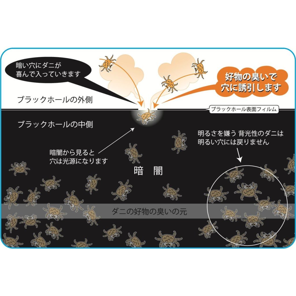 * 專利物理誘捕技術:利用食品級誘導劑(如酵母、黑糖等)吸引塵蟎主動鑽入,並結合塵蟎畏光的「背光性」,令其進入全黑袋內後因入口亮光而不敢回頭,徹底封死其退路。
